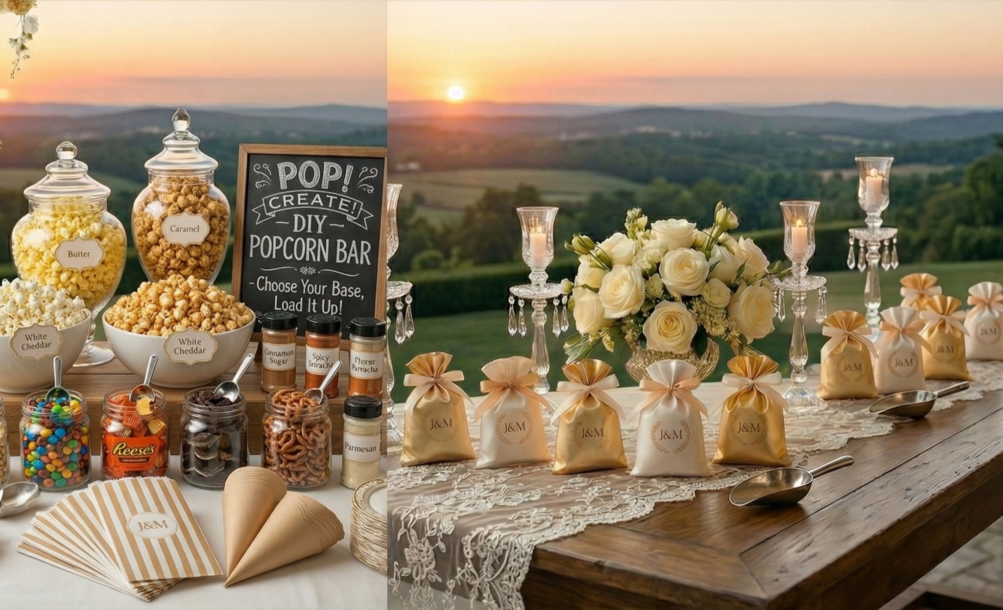 The Gourmet Popcorn Bar: Large bulk bags and elegant scoops for a self-serve station that keeps the party popping.